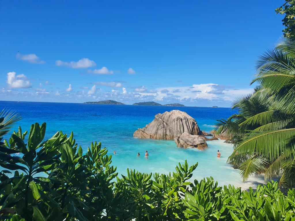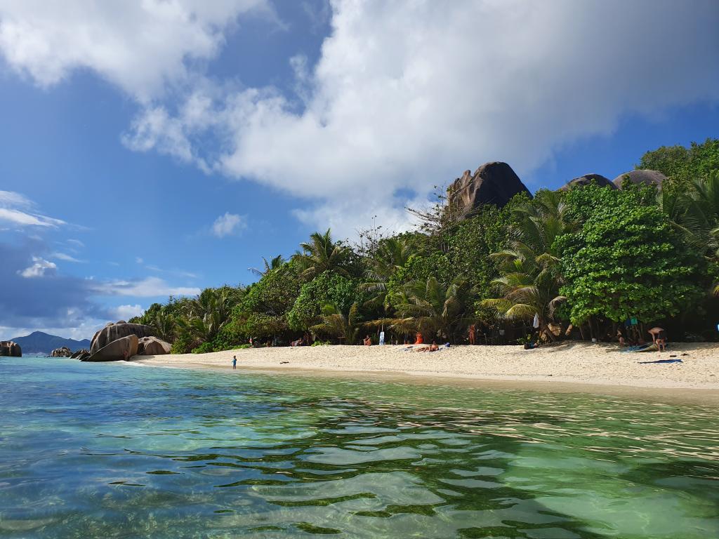 Die Anse Lazio hat uns wirklich den Atem verschlagen. Es war ziemlich leer am Strand, trotz des mittlerweile sehr guten Wetters. Wir haben uns dann erstmal im Meer erfrischt. Bei einem Strandspaziergang haben wir ganz am Ende des Strandes die Honesty Bar entdeckt und haben dort gekühlte Getränke genossen. Am Strand unbedingt bis zum Ende gehen, um die Felsen herum gibt es immer noch einen Weg, der zu weiteren kleinen Strandabschnitten führt.