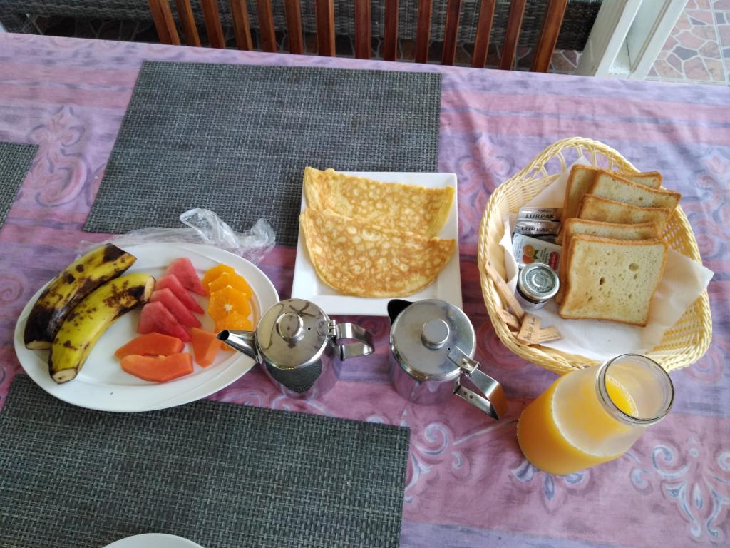 Frühstück hatten wir immer in der Unterkunft gebucht. Es gab immer frisches Obst, Ei und Toast.