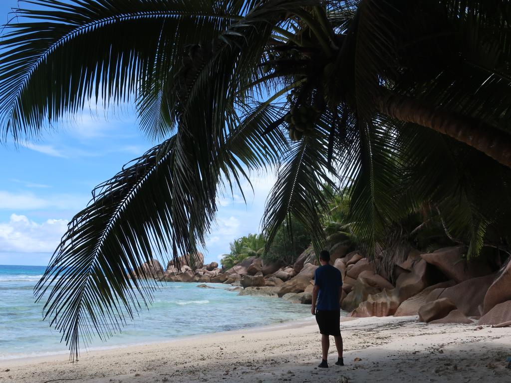Nach 5 Tagen auf Praslin ging es weiter nach La Digue. Hier waren wir im Fleur de Lys untergebracht, welches die beste Unterkunft unserer Reise war. Neben den modern ausgestatteten Bungalows war die Lage ein großer Pluspunkt. Nach Einbruch der Dunkelheit war es noch gut möglich zu Fuß ins Zentrum von La Passe zu gehen und sich am TakeAway oder der Bäckerei zu verpflegen. Am 1. Tag sind wir zur Grand Anse, gefahren und von dort weiter zur Petite Anse und Anse Cocos gewandert. Die meiste Zeit haben wir uns an der Anse Cocos aufgehalten, da man dort im Schatten liegen konnte und sich an der Saftbar mit frisch zubereiteten Säften (100 SCR) stärken konnte.