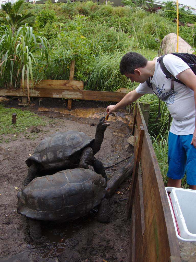 Dabei haben wir direkt die Schildkröten eines nahe gelegenen Hotels entdeckt, die mit bereitgestellten Mini-Bananen gefüttert werden konnten (und auch wollten).