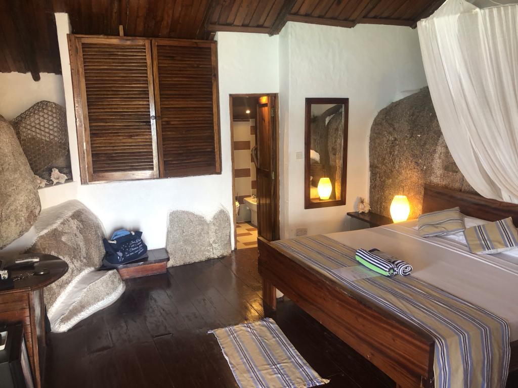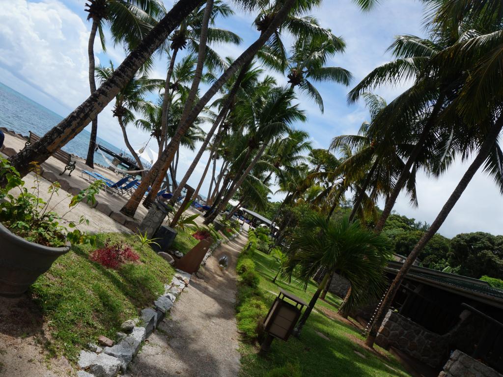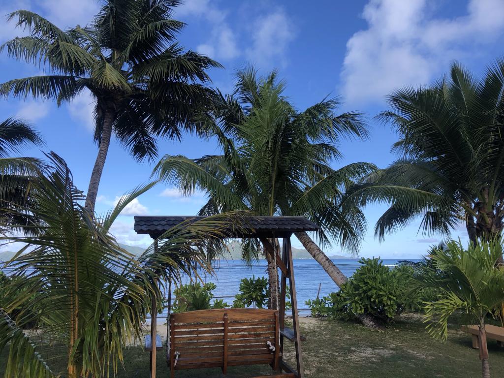 Wir hatten ein Standardzimmer, welches für uns vollkommen ausreichend war. Der tropische Garten war sehr schön gepflegt und jedes Zimmer hatte einen eigenen Balkon oder eine kleine Terrasse. Wir hatten nur mit Frühstück gebucht, es war jedoch möglich am Abend im Restaurant am täglich wechselten Menü teilzunehmen. Hier haben wir uns auch einen Mietwagen geliehen um selbstständig, die nächsten Tage, die Insel zu erkunden. Dies können wir nur empfehlen, da es in der Nähe des Hafens keinen direkten Strand gibt und wir auf Praslin noch zwei weitere Unterkünfte gebucht hatten. Somit waren wir einfach flexibler. Auf den Seychellen herrscht Linksverkehr und die Straßen sind um einiges enger als in Deutschland. Mit etwas Übung macht es aber riesig Spaß, die Insel auf eigener Faust zu erkunden.