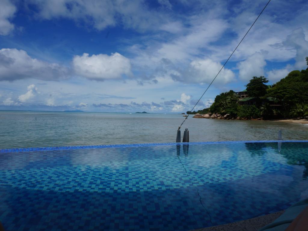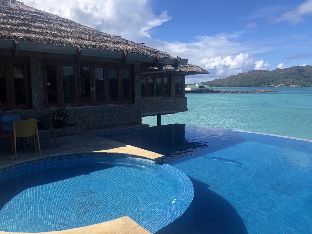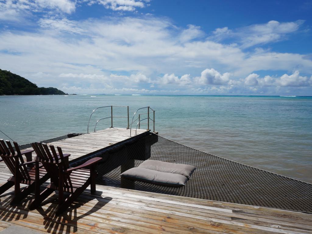 Das Hotel hat einen ganz besonderen Badesteg, ausgestattet mit einer Rundinsel mit eigenen Salzwasserpool und viele Liegemöglichkeiten zur Entspannung. Hier erlebten wir unseren ersten Sonnenuntergang auf den Seychellen und wussten es wird nicht der letzte sein .