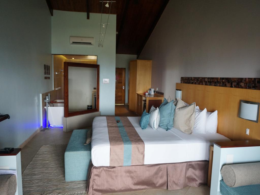 Auf Praslin hatten wir noch eine weitere Unterkunft für eine Nacht das Hotel Coco de Mer & Black Parrot Suites. Das Superior Zimmer war modern ausgestattet mit schöner Terrasse und Meerblick.