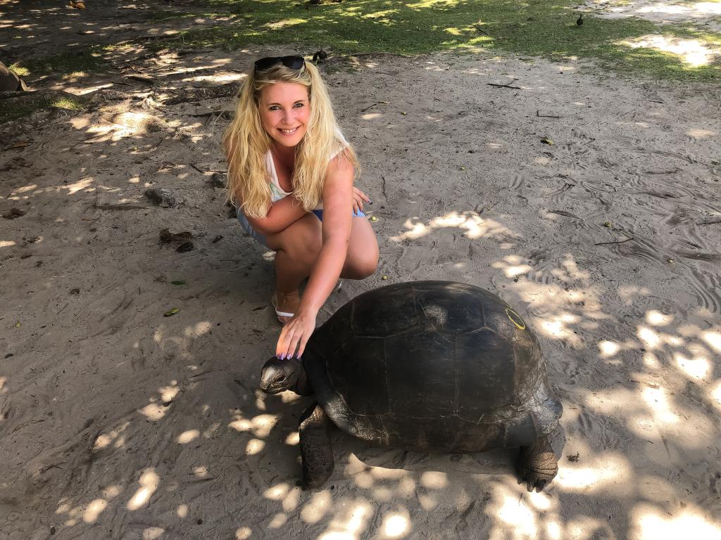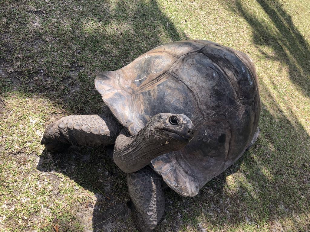 Bekannt als Naturreservat und die Heimat von zahlreichen Vögeln und gefühlt Millionen von Moskitos. Wir waren mit Nobite Mückenschutz zwar ausgestattet, aber irgendwie half es nicht. Auch andere Mittel gegen Moskitos waren fast ohne Wirkung. Einziger Vorteil, die Stiche waren bereits am nächsten Tag wieder verschwunden. Wir machten hier eine 1-stündige Tour über die Insel. Quer durch den Wald - Berg auf Berg ab mit einzigartigen Blick. Am Ende wurden wir mit einem wunderschönen Strand mit punderzuckerartigen Sand belohnt. Ein Zitat vom Guide blieb uns in Erinnerung „you only die once, but you life every day“. Wie recht er hat. Dann ging es weiter zur nächsten Insel der Schildkröteninsel Curieuse, in den Curieuse Marine National Park, wo es erstmal eine Mittagsstärkung als BBQ gab. Die Schildkröten waren schön in Reichweite und schauten uns beim Essen zu. Danach ging es zum ausführlichen Schildkröten graulen :-). Auf der Insel leben ca. 300 freilaufende Riesenschildkröten mit einem Alter von bis zu über 100 Jahren. Auch Babyschildkröten haben wir gesehen .