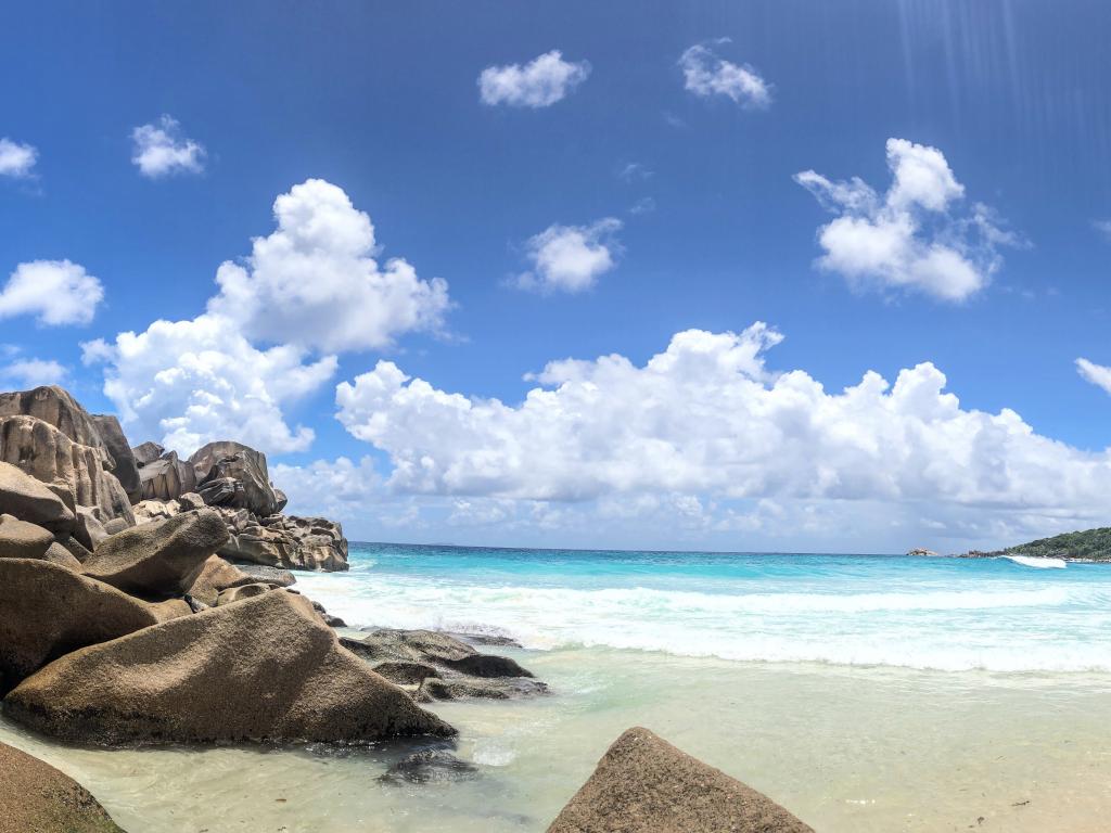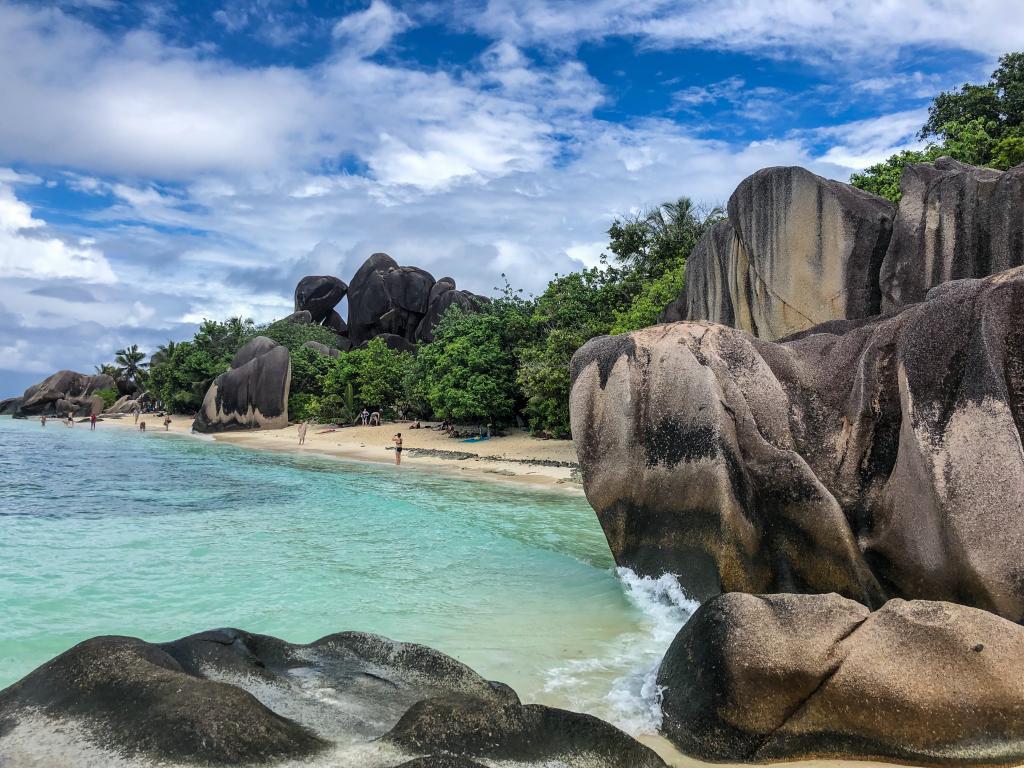 Der Strand ist über den Naturschutzpark L'Union Estate zu erreichen. Der Eintritt beträgt 8 Euro pro Person. Die eindrucksvollen Granitfelsen könnten wir schon von weiten sehen. Traumhaft schön in Kombination mit dem kristallklaren, türkisen Wasser und den Palmen. Ein weiteres Highlight ist der Strand „Grand Anse“ . Grand Anse, La Digue
