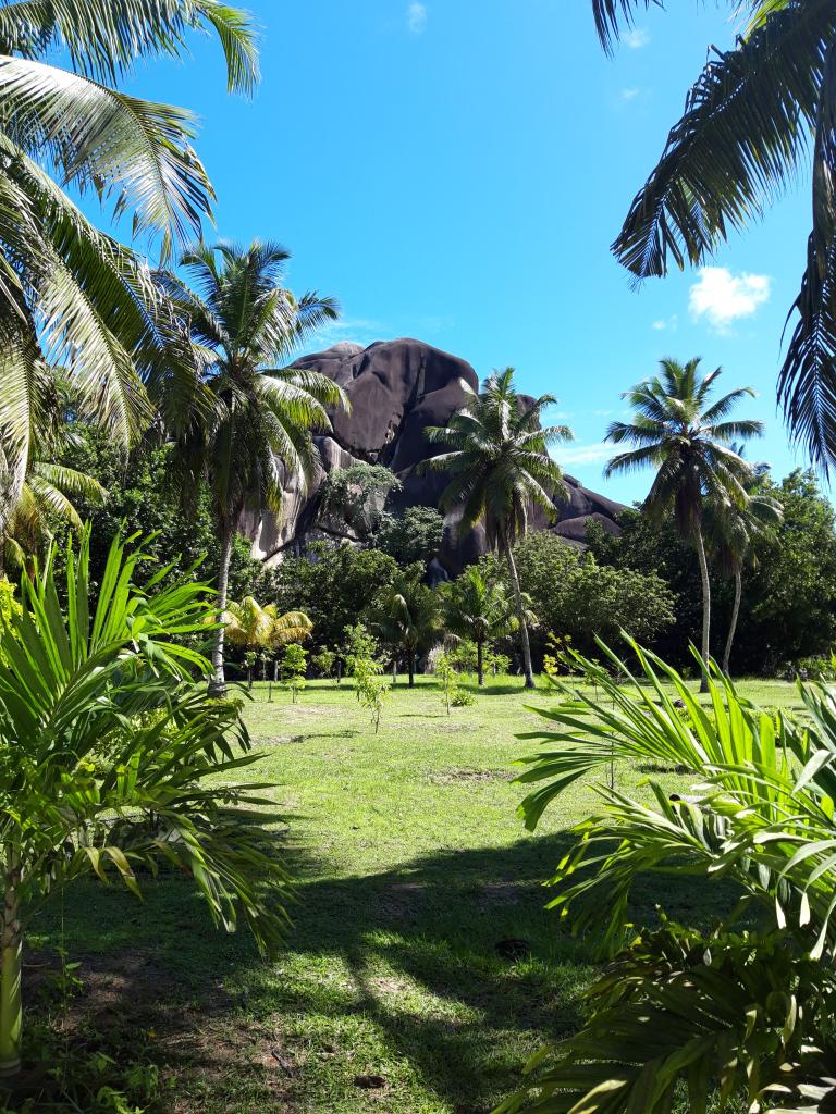 war sehr gut. Hier gab es das Frühstück in Buffetform, mit ausreichender Auswahl. Die Unterkünfte liegen alle direkt am Strand, nicht mal 10 Meter vor der Tür. Leider hatten wir etwas Pech mit dem Wetter. Aber auch bei Regen kann man den Vallée de Maid en dortigen Nationalpark besuchen. Der Park ist UNESCO Weltkuturerbe und dort kann man die Coco de Mer, die größte Nuss der Welt bewundern, die es nur auf den Seychellen gibt .Von der Unterkunft bis zum Park dauert es zu Fuß eine Stunde. Wem das zu lang ist, der kann für lediglich 7 Rupien den Bus nehmen. Coco de Mer, Praslin