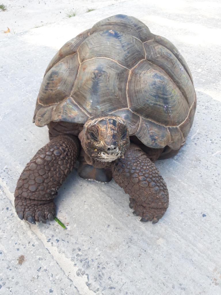 Besonders gefallen haben uns auf La Digue auch die Riesenschildkröten, die zum Teil einfach über die Straße laufen und einen netten Schnappschuss ermöglichen .