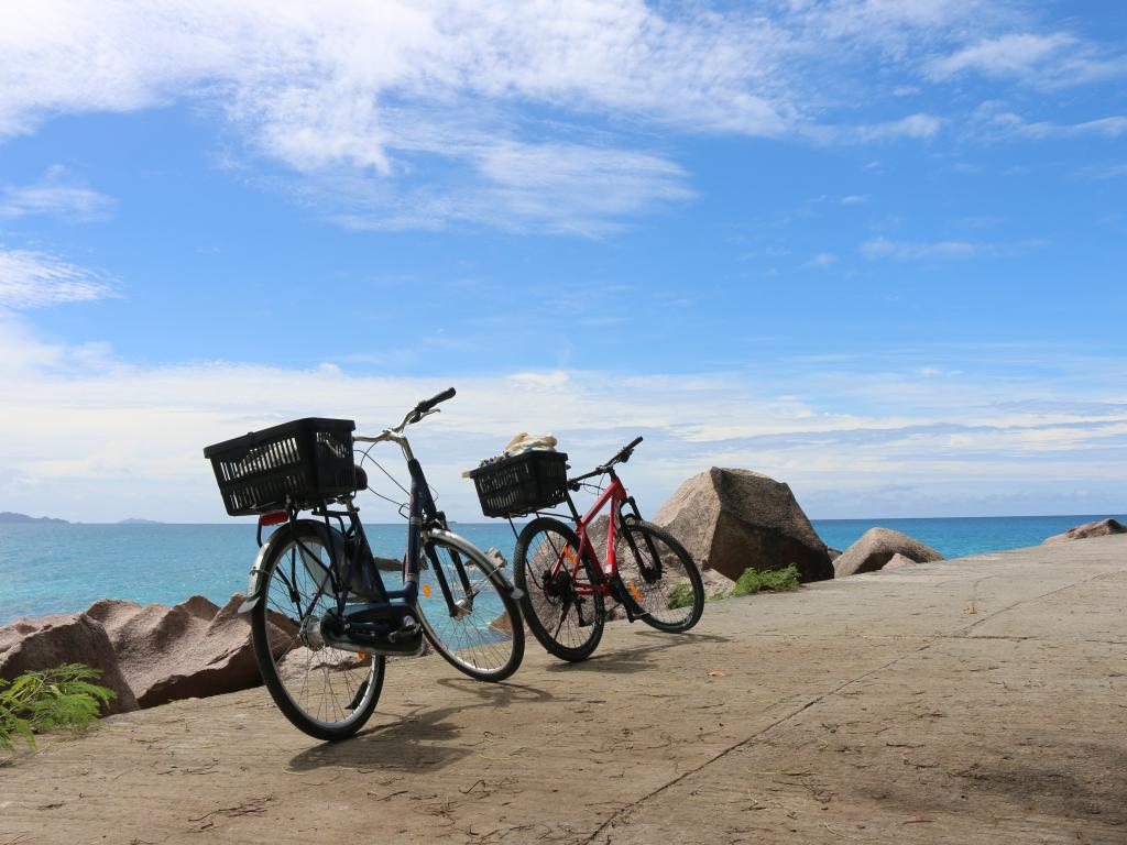 Der letzte Tag auf Praslin! Die Tage auf Praslin war sehr schön, doch es ist Zeit weiterzuziehen. Heute geht es mit der Fähre von Praslin nach La Digue, wo wir vom Hafen in zehn Minuten zu Fuß zu unserer dritten und letzten Unterkunft,Fleur de Lys, gehen. Die Unterkunft besteht aus einer Anlage mit einigen alleinstehenden Bungalows mit vollständig ausgestatteter Küche, einer Terrasse und separaten Wohn- sowie Schlafzimmer. Auch das Badezimmer ist sehr geräumig. In der Unterkunft kann man direkt Fahrräder inkl. Schloss ausborgen, was wir gleich in Anspruch nehmen. Mit unseren Rädern erkundigen wir die Insel und fahren zuerst ganz in den Westen zu Anse Fourmis. Dann drehen wir um und fahren in die andere Richtung zu Grande Anse, wo wir uns eine Kokosnuss gönnen. Zum Schwimmen ist der Strand hier weniger geeignet, dafür sind die Strände umso schöner zu besichtigen mit den rauen Wellen.