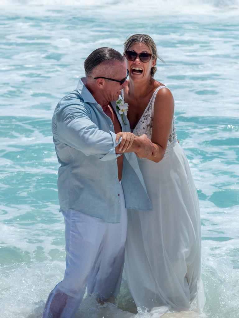 Als wir so weit waren, starteten wir mit dem Fotoshooting. Dies war wirklich sehr angenehm. Keine gestellten Bilder, einfach natürlich und wundervoll - wie auch die Kulisse. Es war wie im Traum. Da sich das Wetter von seiner besten Seite zeigte, gab es am Ende des Shootings noch eine „Abkühlung“ im Wasser bei 29 Grad Wassertemperatur in voller Montur. Es war herrlich – und der Tag ein wahr gewordener Traum.