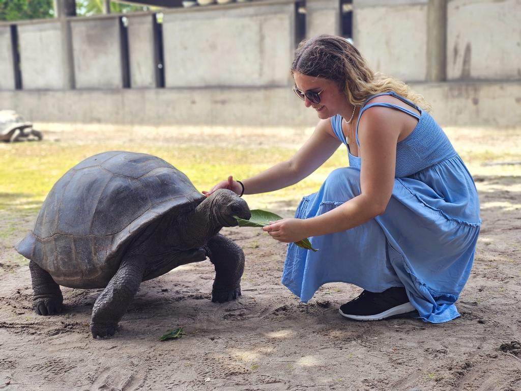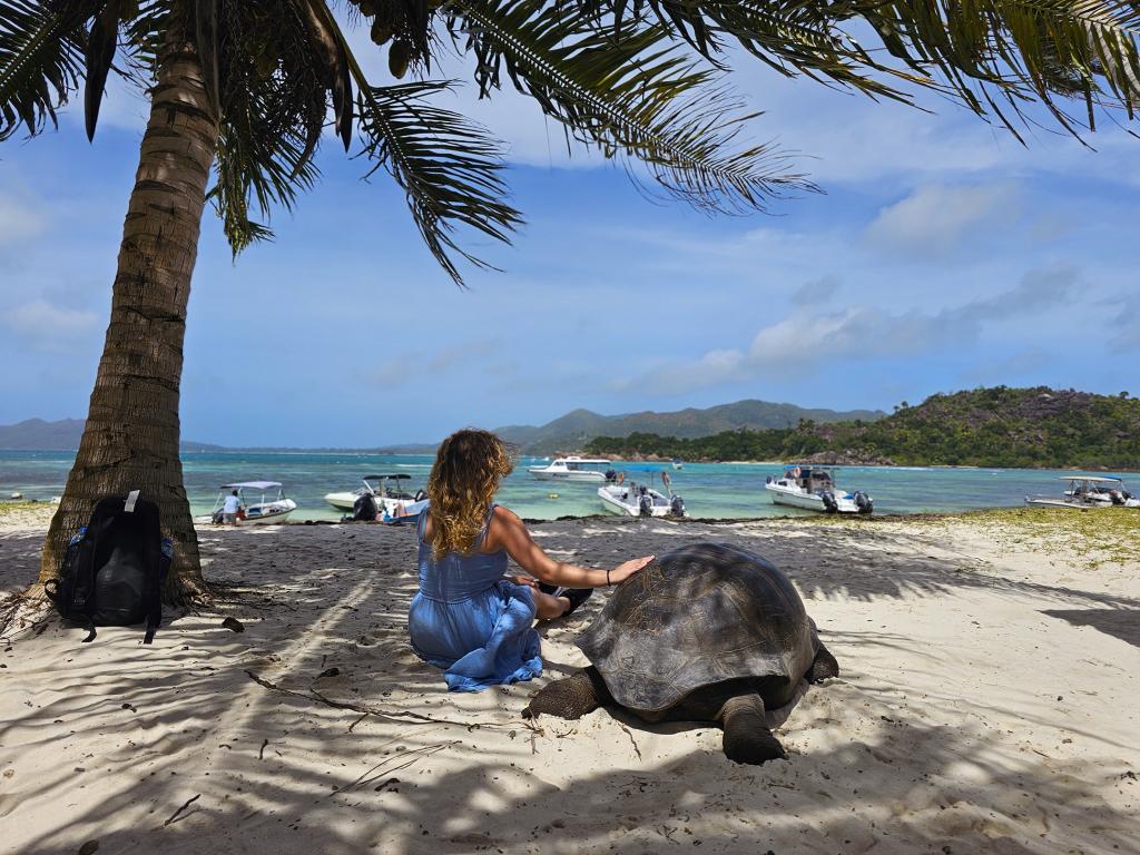 Ein Highlight war für uns der Bootsausflug auf die Insel Curieuse, in den Curieuse Marine National Park, auf der über 400 Riesenschildkröten leben. Eine Wanderung quer über die Insel zeigte uns die eindrucksvolle Natur und die vielen verschiedenen Tiere. Unter anderem konnten wir Krebse, Mangrovenschnecken und Zimtbäume sehen. Am Strand von Grand Anse wurden wir dann von unzähligen Schildkröten herzlich begrüßt, mit denen wir eine tolle Zeit verbrachten. Mit einem traditionellen kreolischen Mittagessen gestärkt, ging es dann weiter zum Schnorcheln. Was für ein großartiger Tag! Müde, aber überglücklich, ließen wir den Tag auf unserer wunderschönen Terrasse ausklingen.