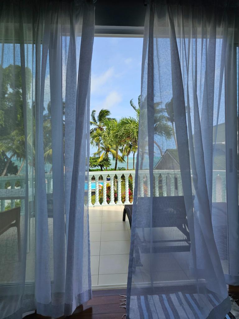 Unsere Reise startete mit dem Flug nach Mahé. Am Flughafen wurden wir abgeholt und herzlich empfangen; wir fühlten uns direkt sehr wohl und willkommen. Von dort aus ging es mit der Fähre nach Praslin, wo sich unser erstes Hotel befand. Unsere erste Unterkunft war die Ocean Villa und was sollen wir sagen? Dieser Ort hat uns von Anfang an überwältigt. Kaum angekommen, kam Ailyn, unsere Gastgeberin, mit zwei frischen Kokosnüssen und einer Früchteplatte auf uns zu und begrüßte uns herzlich. Das Zimmer war riesig, sehr einladend und verfügte über eine große Terrasse. Auf dieser ließ es sich gut verweilen und wir verbrachten einige schöne Stunden darauf. Ailyn war dabei stets offen für unsere Fragen und brachte uns immer mal wieder frische Früchte, Pancakes und mehr vorbei.