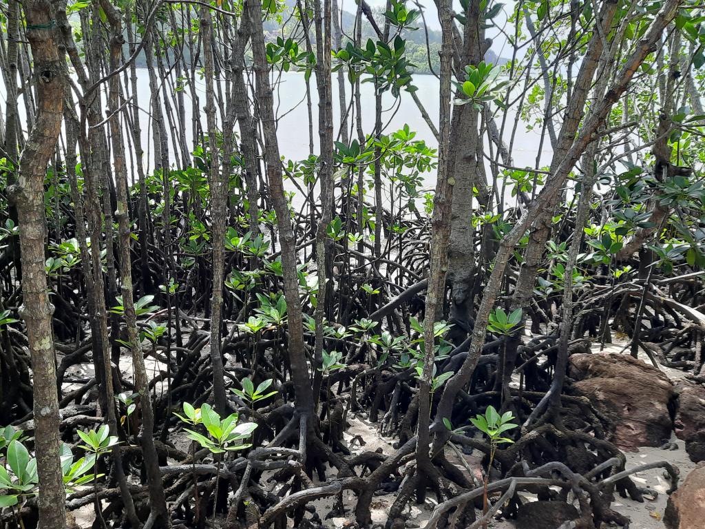Nach ausgiebigen Fotos mit den Riesenschildkröten wanderten wir durch Mangroven-Wälder auf einem gemütlichen Pfad um den südwestlichen Teil der Insel und wurden dort wieder von unserem Boot abgeholt.