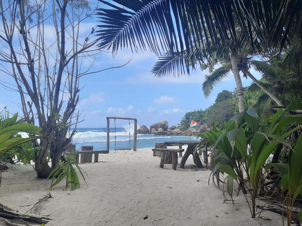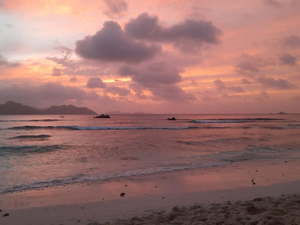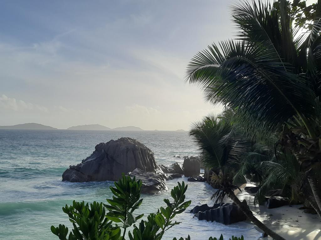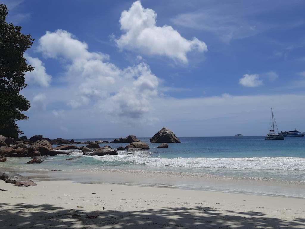 Am nächsten Tag ging es mit der Fähre nach La Digue, wo wir im Patatran Village Hotel an der Nordspitze unsere Unterkunft gebucht hatten. Gleich nach Ankunft nutzten wir den hoteleigenen Strand und stürzten uns in die Fluten – besser gesagt in die Wellen.