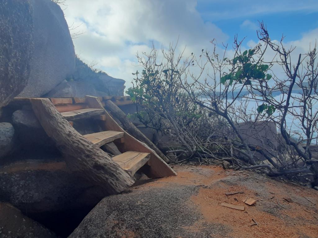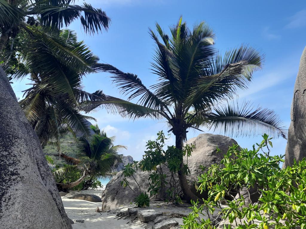 Für den kommenden Tag stand eine Bergtour auf den höchsten Punkt La Digues auf dem Programm: dem Nid d’Aigles. Eigentlich ist der Gipfel nur 333 m hoch. Aufgrund der Steilheit und der hohen Temperaturen war die Besteigung trotzdem eine schweißtreibende Angelegenheit. Der Blick war aber gigantisch und jeden Schweißtropfen wert.