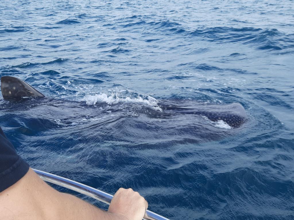 Den ersten Tag nutzten wir zur Erholung und genossen die herrliche Aussicht von unserer Terrasse und am Abend ein hervorragendes kreolisches Abendessen. Beim Frühstück am nächsten Tag erzählte uns Silvia, die Managerin auf Chauve Souris, dass sich im Moment ganz in der Nähe junge Walhaie aufhalten würden, und bot uns an, eine entsprechende Tour zu organisieren. Diese Gelegenheit ließen wir uns nicht entgehen und so befanden wir uns kurze Zeit später auf einem Boot und hatten sogar die Gelegenheit mit den Walhaien zu schnorcheln. UNVERGESSLICH!!!