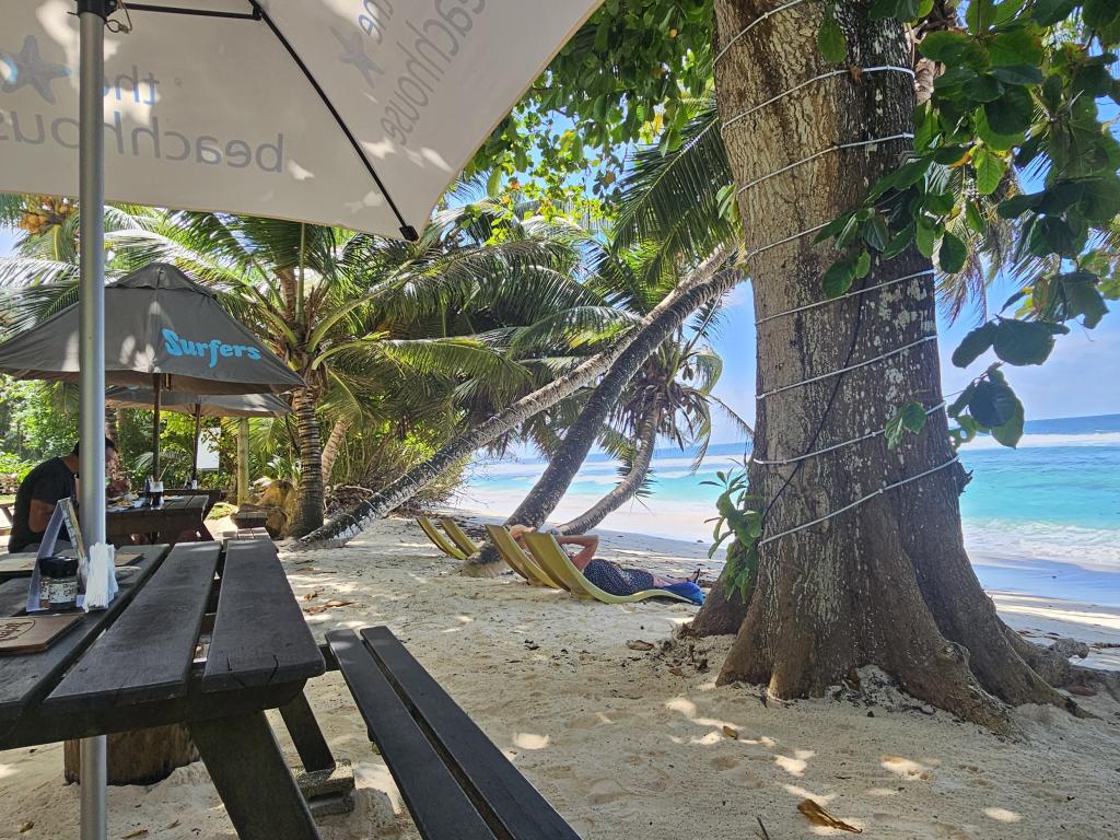 Auch hier wieder einen netten Gastgeber Jacque und Isabelle, die Seele des Hauses. Die Unterkunft liegt quasi direkt am Strand. Im Juli zum Südost Monsun ist diese Seite der Insel windig und ein bisschen wellig, aber trotzdem superschön und vor allem erfrischend; zum Nordwest Monsun ist diese Seite der Insel dann glatt und türkis. Auf Praslin sind die Strände Anse Georgette und Anse Lazio ein Muss!