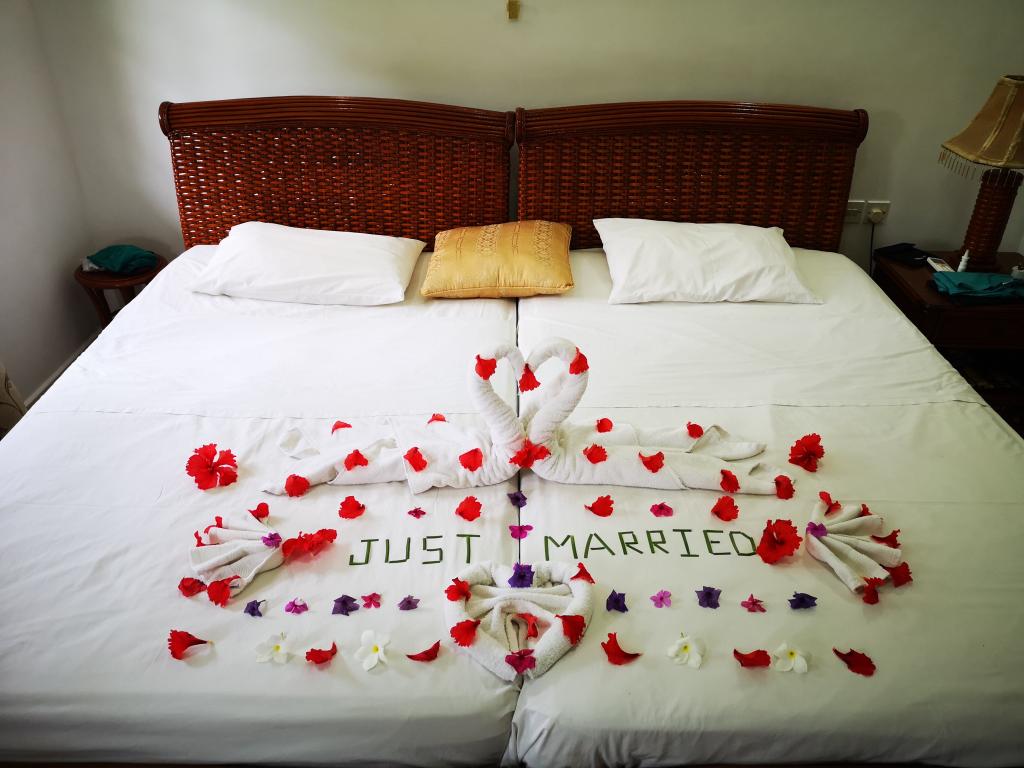 Die " Jungs" vom "Le Surmer" hatten eine Riesenüberraschung für uns vorbereitet: Sie hatten zum ersten Mal das Club-car heimlich für uns geschmückt, mit dem sie uns zum Zeremonie-Platz am "Source d'argent" gefahren haben, begleitet mit Musik: Ed Sheeran "Perfekt "! Wir waren so gerührt und alles war einfach nur wunderbar! An diesem Abend haben wir erstmals nach dem Duschen die Strandhandtücher benutzt, weil wir es nicht über's Herz gebracht haben, die Bettdeko "Just married" gleich zu zerstören. Es war eine Traum-Hochzeit, die wir niemals vergessen werden!!! Ach ja und by the way, unsere Fotografin hieß Shanna. Danke auch an Shanna, die uns mit solcher Leichtigkeit durch das Fotoshooting begleitet hat, vor dem wir so viel Schiss hatten! Und sooo tolle Fotos hat sie gemacht!!! Hochzeit auf La Digue