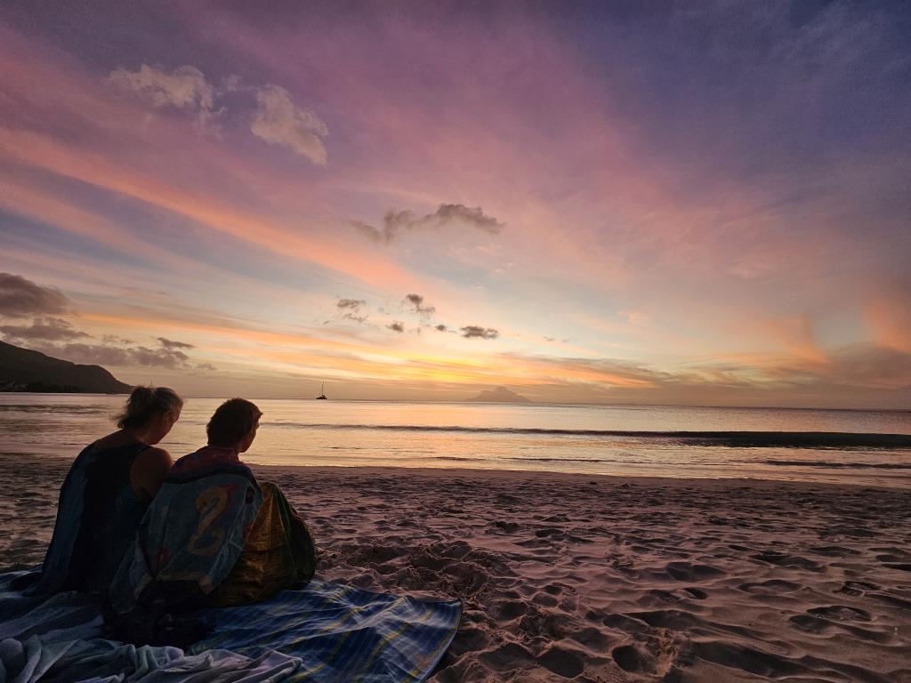 Also wir waren wahrhaftig für drei Wochen im Paradies!!! Wir hoffen, dass wir einiges von der Entspanntheit, Lebensfreude und Dankbarkeit, die wir erleben durften, in unseren lebens- und Arbeitsalltag hinüberretten können. Ja, und dann hoffen wir natürlich darauf, dass wir wiederkommen können! Mahe, Sonnenuntergang