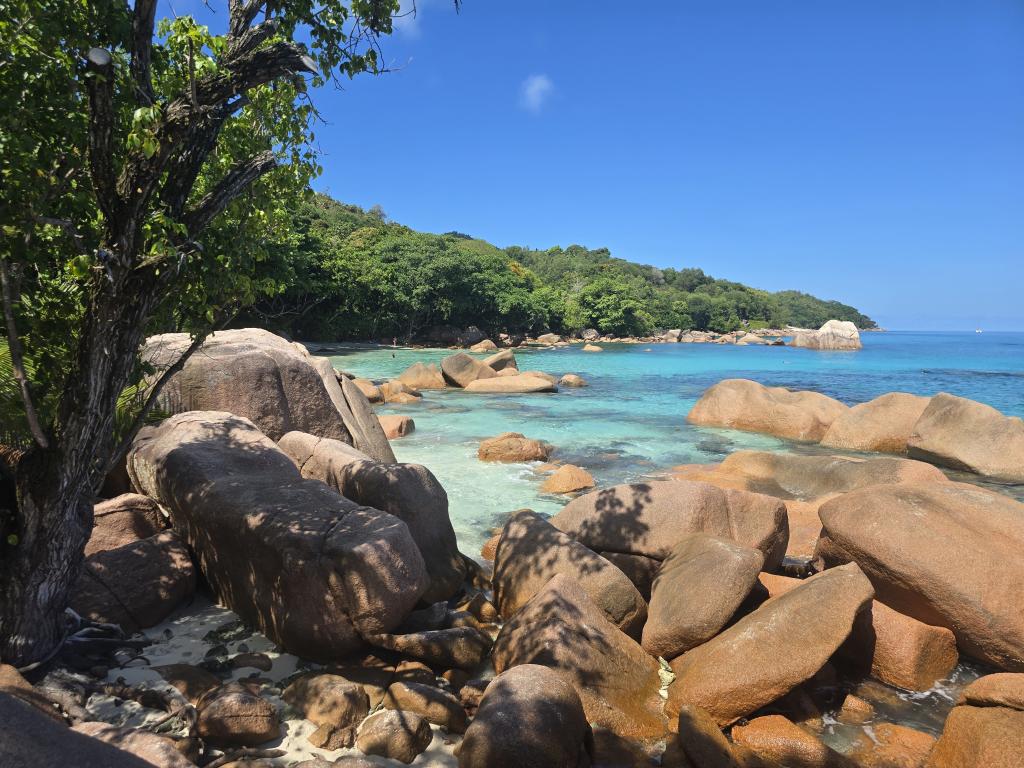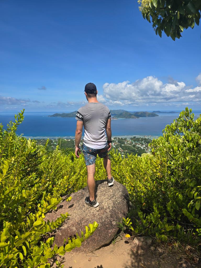 Ein weiteres Highlight war unsere Inselrundfahrt mit dem Auto. Unser Ziel: der Anse Lazio, der nicht nur als der schönste Strand der Insel gilt, sondern auch zu den schönsten der Welt gehört. Während der Fahrt hielten wir immer wieder an kleinen Aussichtspunkten, die uns den Atem raubten. Später fuhren wir in eine andere Ecke der Insel (obwohl wir dafür komplett außen herum mussten) und folgten einem Tipp von zwei Busfahrern: Sie empfahlen uns den Orique Praslin Seychelles Trail. Der Weg führte uns durch den dichten Urwald, und dank der Markierungen fanden wir problemlos zum Gipfel, wo uns eine atemberaubende Aussicht erwartete.Zum krönenden Abschluss des Tages besuchten wir den Anse Georgette, der hinter der luxuriösen Anlage des Hotel Constance Lemuria liegt. Uns wurde erlaubt, durch die Anlage zu spazieren – was ein Erlebnis! Das Resort wirkte unglaublich exklusiv, und besonders das Restaurant mit nur drei Außentischen auf der Terrasse war beeindruckend.