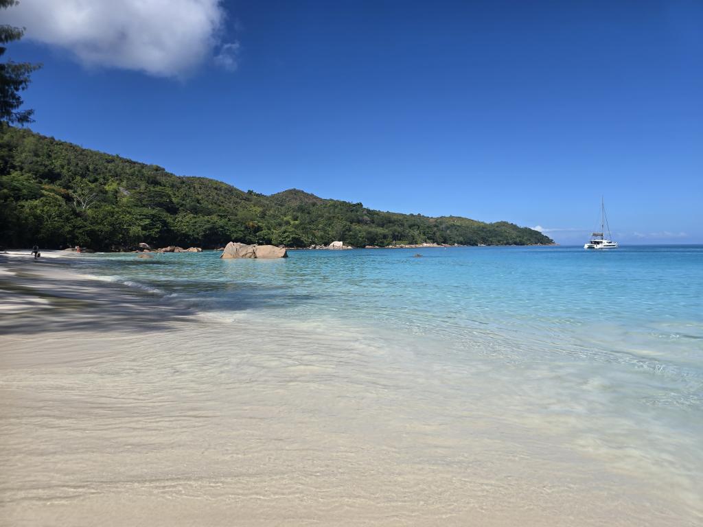 Wir schnorchelten oft und entdeckten dabei eine faszinierende Unterwasserwelt mit vielen verschiedenen Fischarten, Rochen und sogar Babyhaien – besonders am Anse Lazio. Unsere Highlights auf Praslin: der traumhafte Anse Lazio und unser "Privatstrand" Anse la Bague.