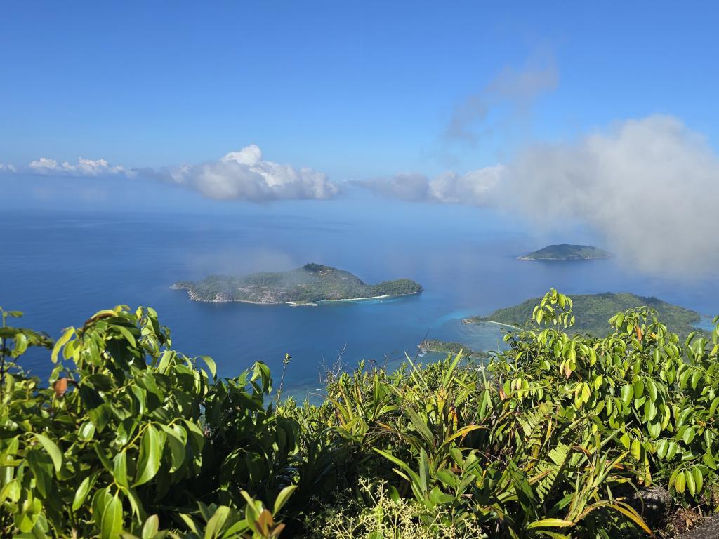 Weiterreise nach La Digue Auf La Digue waren wir in der gemütlichen, kleinen Pension Hibiscus untergebracht, wo uns die herzlichen Gastgeber willkommen hießen. Die Insel erkundeten wir komplett mit dem Fahrrad – ein Traum! Es gibt unzählige Trails, die zu wunderschönen Stränden und entspannten Beach Bars führen. Zum Schwimmen ist La Digue nicht ganz so ideal wie Praslin, da die Wellen oft recht stark sind. Dafür gibt es hier beeindruckende Felsenpools und eine spektakuläre Unterwasserwelt. Das Wetter war auf unserer Seite: fast immer Sonnenschein und kein Regen – einfach perfekt. Kulinarisch bietet La Digue viele gute Takeaways für Snacks zwischendurch. Abends kochten wir meist selbst, oft mit fangfrischem Fisch, den wir direkt vom Fischer kauften. Ein besonderes Erlebnis war das Kreo Festival, ein buntes, lebhaftes Fest mit zahlreichen Essensständen und Live-Musik – fast wie ein Stadtfest auf Seychelliois. Eines unser Highlight war der Trail zum Nid d'Aigle, von dem aus wir nicht nur einen grandiosen Aussichtspunkt, sondern auch einen weiteren, zufällig entdeckten Punkt namens Roche Baie erkundeten. Die Wanderung hatte es in sich: 600 Höhenmeter auf 5 Kilometern – ziemlich steil, aber absolut lohnenswert!