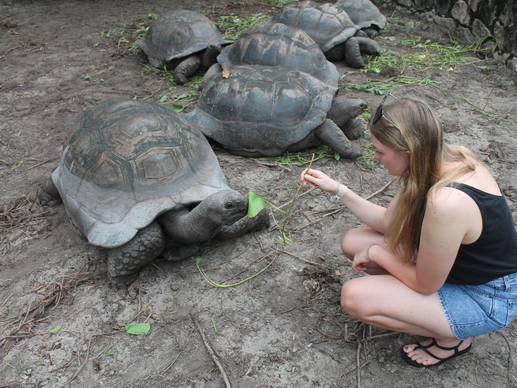 und natürlich den Anse Source d'Argent. Der Eintritt pro Person lag hier bei ca. 15 €. Zuerst passierten wir den piratenähnlichen Friedhof, ehe wir bei den riesigen Schildkröten ankamen. Nach einer Fütterung der Schildkröten war der nächste Halt die Vanilleplantage. Hier konnten wir viele Eindrücke über den Anbau von Vanille gewinnen. Die Kulisse des Anse Source d’Argents war wie im Bilderbuch. Zum Glück war es nicht zu sehr von Tagestouristen überlaufen und man konnte in Ruhe Fotos machen oder einfach die Atmosphäre genießen.