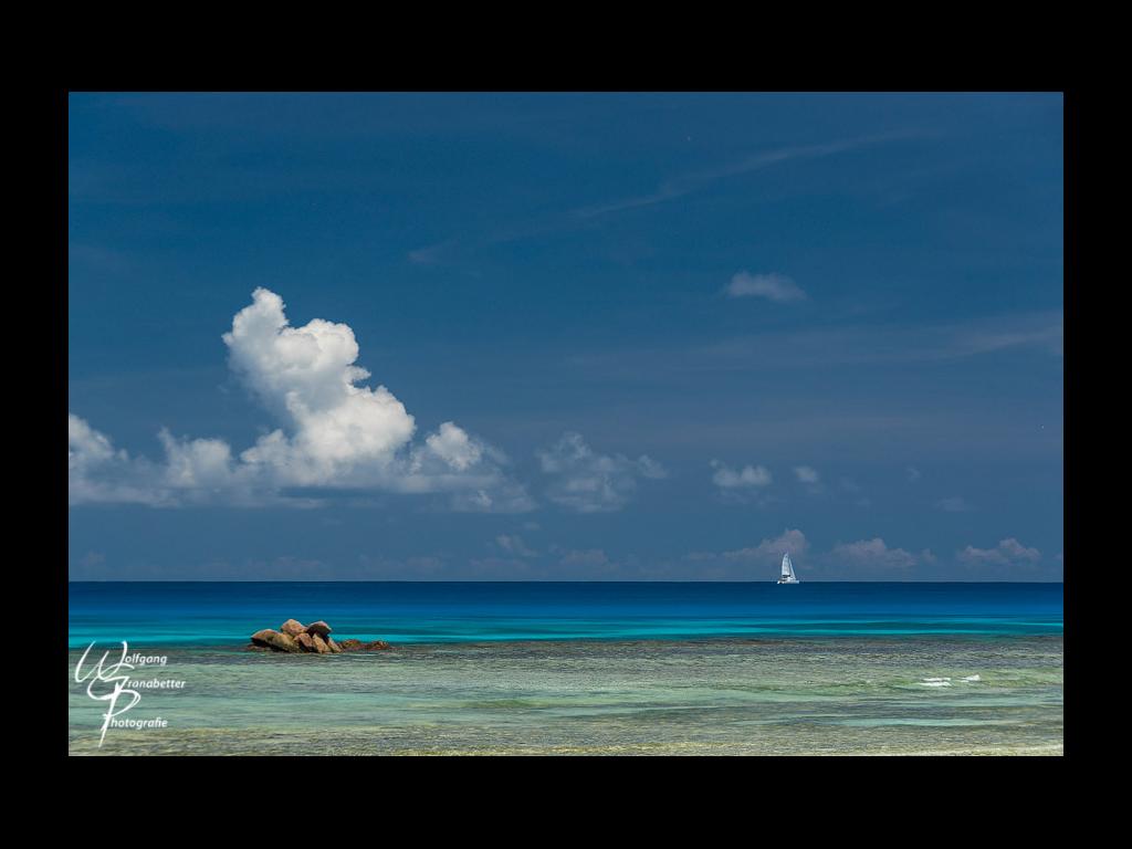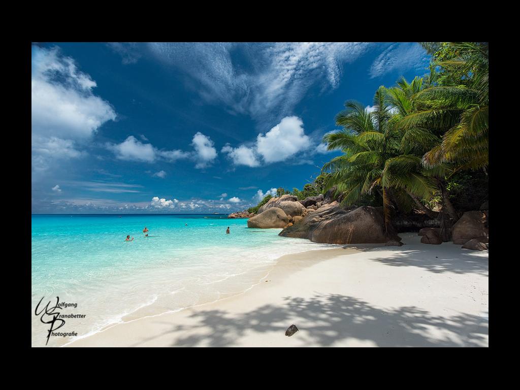Für mich als Hobbyfotografen ein Paradies: weißer, feinster Sand, mit Palmen gesäumt, dekorative Granitfelsen, türkisblaues Wasser, strahlend blauer Himmel….