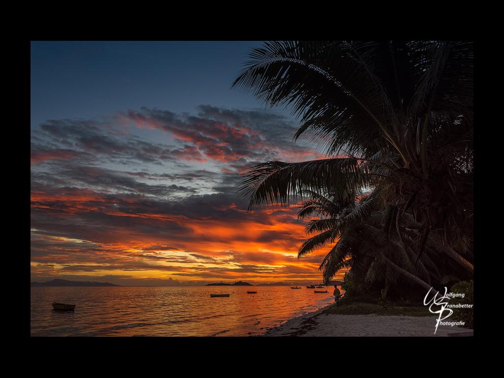 Auch auf Praslin nutzten wir die schönen Strände zu ausgedehnten Spaziergängen und so hatten wir nochmals das Glück am letzten Abend unserer Reise einen weiteren der beeindruckend schönen Sonnenuntergänge genießen zu können.