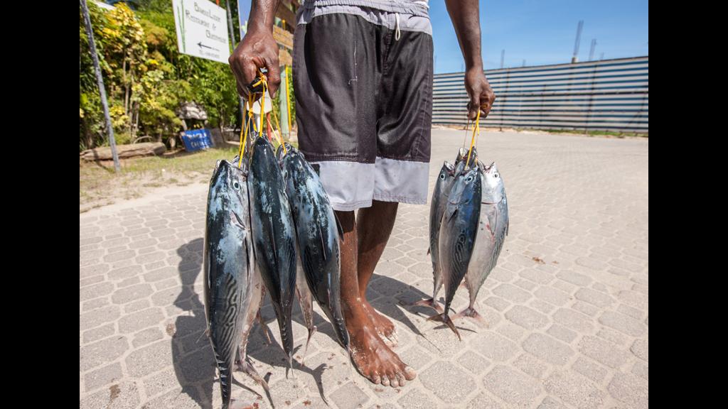 Genießen Sie eine Tagestour mit verschiedenen Angeltechniken auf Praslin, der Insel der Coco de Mer.